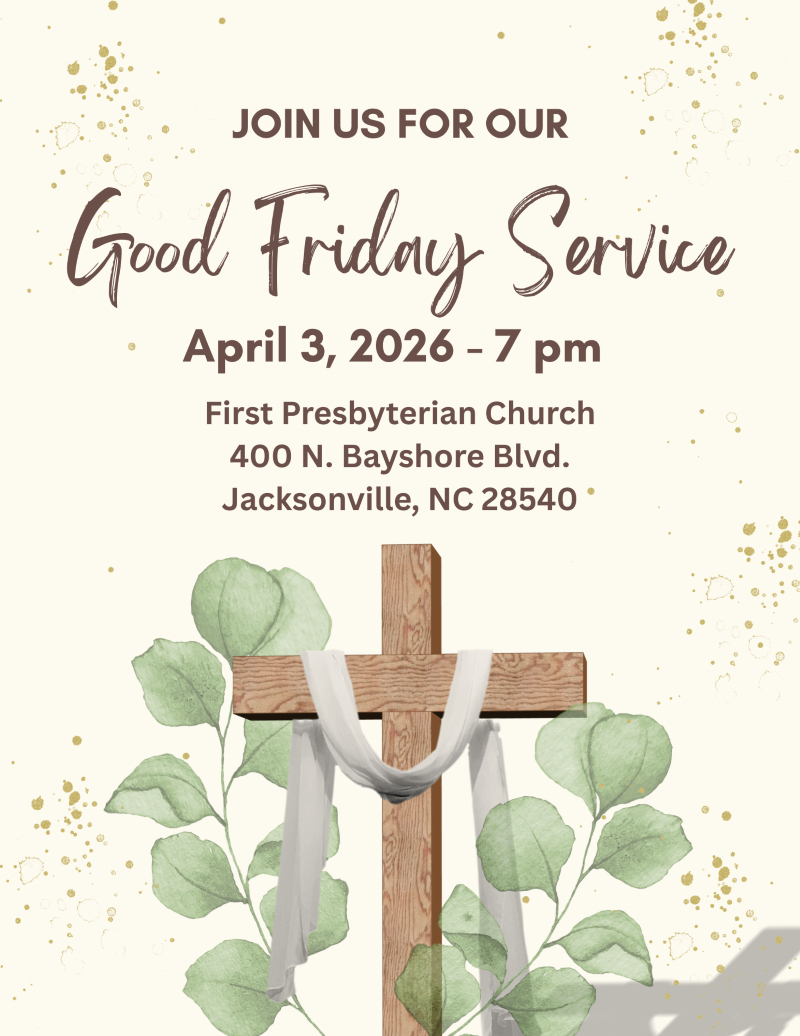 Welcome to First Presbyterian Church in Jacksonville, NC! We are part of the Presbyterian Church (USA). If you are new in our community, please check out Our Mission page to learn more about us!